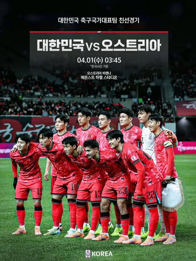 대표팀은 한국시간으로 오는 4월 1일 오전 3시 45분 오스트리아 수도 비엔나의 에른스트 하펠 슈타디온에서 오스트리아와 평가전을 치른다.