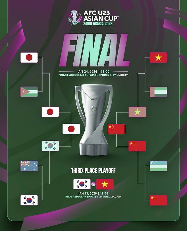 중국은 오는 25일 사우디아라비아 제다의 프린스 압둘라 알 파이살 스포츠 시티 스타디움에서 일본과 2026 AFC U-23 아시안컵 결승전을 치른다.