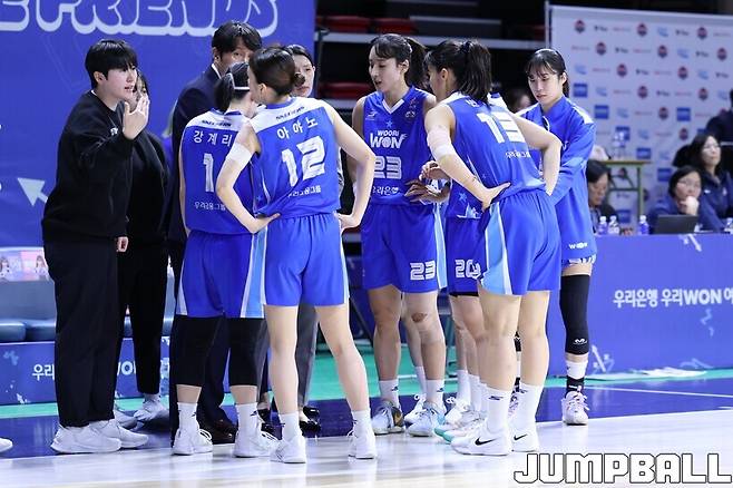 우리은행은 오니즈카 아야노가 21점(6리바운드 3어시스트), 김단비가 16점 16리바운드로 활약하며 승리에 앞장섰다. 신한은행은 신이슬이 양 팀 최다이자 자신의 커리어하이인 25점(3리바운드 5어시스트)을 올렸지만, 역부족이었다.