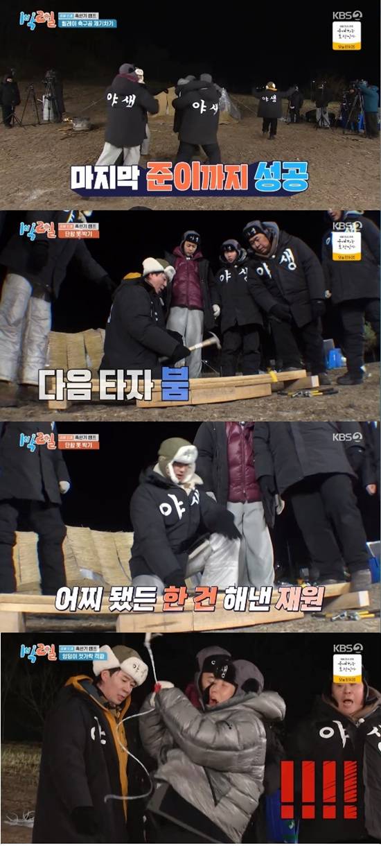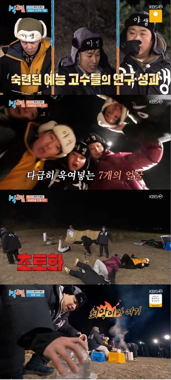 멤버들은 혹한기 캠프 최애 식재료인 라면이 걸린 게임이 엉덩이 젓가락 격파로 나오자 바로 회의에 돌입했다. '예능 경력자' 김종민, 문세윤, 붐이 노하우 전수에 나섰다.