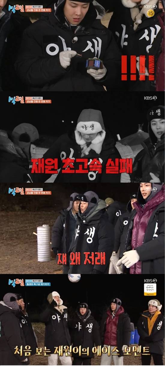 멤버들을 쌀을 걸고 성냥불 한 번에 켜기에 도전했다. 첫 주자 김종민이 성공한 가운데 다섯 번째로 나선 김재원이 1초 만에 실패를 했다.