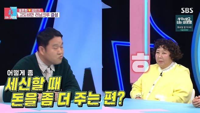 홍윤화를 본 서장훈은 "(그래서 그런지) 살짝 다시 살이 오른 느낌?"이라고 했고, 홍윤화는 "붓기도 하고, 흰옷이라 그렇다"고 다급하게 해명했다. 그러자 신기루는 "부을 시간 아니다. 제가 말하지 않았냐. 결국 저로 돌아온다고"라고 단호하게 말했다.