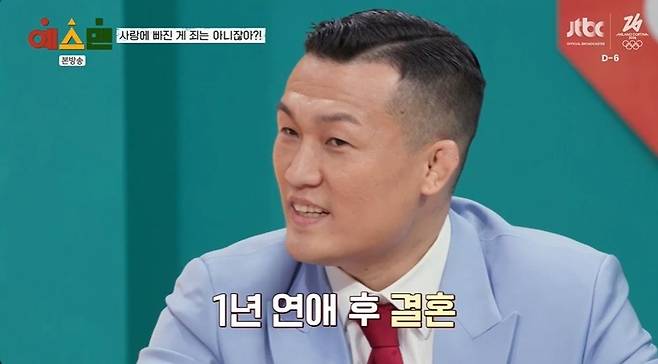 이에 정찬성은 "환승했단 얘기"라고 고백했고, 이형택은 "프로그램을 잘못 찾아온 거 아니냐"라고 말해 웃음을 안겼다. 정찬성은 "여자친구가 있었는데, 그 과정에 제가 아내를 알게 됐다. 아내가 너무 괜찮아서 아내를 만나기 위해 여자친구와 헤어졌다"라고 설명했다. 아내와는 1년 연애 후 결혼했다고.