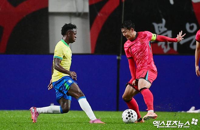 경기 초반부터 브라질 공격은 위력적이었다. 전반 13분 비니시우스(레알 마드리드)의 패스를 받은 이스테방(첼시)이 선제골을 터뜨렸고, 41분에는 호드리구(레알 마드리드)의 추가골이 터지면서 한국은 0-2로 끌려갔다.