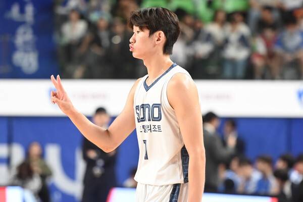 [SPORTALKOREA] 이정엽 기자= 지난해 KBL 신인 드래프트는 '고졸 얼리' 열풍이 불었다. 대학교 4학년을 마치고 드래프트에 나선 졸업생들은 단 1명도 로터리(1~4순위)에 들지 못했다. 대신 1라운드 1순위로 홍대부고 출신 포워드 박정웅이 안양 정관장의 부름을 받았고, 2순위는 경복고 출신 포워드 이근준이 고양 소노 유니폼을 입었다.