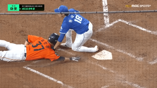 그런데 2루수 류지혁의 1루 송구가 뒤로 빠진 것을 보더니 홈으로 달렸다. 하지만 포수 강민호의 커버가 빨랐고, 홈에서 여유 있게 아웃당했다. 김재걸 3루 주루코치가 말렸음에도 이를 무시하고 뛰었다가 어이 없는 주루사를 당했다.