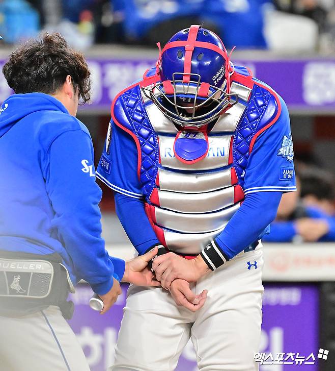 삼성 선수단 가운데 가장 고생한 선수는 단연 포수 강민호다. 강민호는 불혹의 나이에 포스트시즌 11경기 연속 선발 포수 마스크를 쓰고 투수들과 호흡을 맞췄다. 포스트시즌 기간 내내 날씨가 좋지 않았고, 플레이오프 시리즈 때는 추위까지 찾아와 악전고투를 이어갔다. 강민호는 24일 5차전에서도 수비 도중 파울 타구에 손을 맞아 경기 중반 교체되기도 했다.