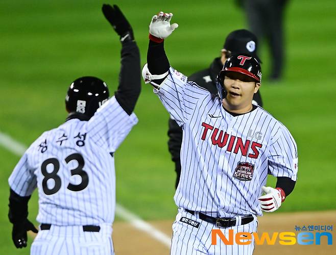 ‘문보경 4안타 5타점’ 타선 폭발한 LG, 한국시리즈 2차전도 대승..시리즈 2-0 리드