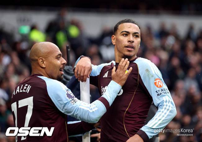 빌라가 경기를 원점으로 돌렸다. 전반 37분 로저스가 아크 부근에서 수비를 따돌린 뒤 묵직한 중거리 슈팅으로 골망을 갈랐다. 뚝 떨어지는 무회전 슈팅인 만큼 비카리오로서도 막기 어려웠다. 전반은 1-1로 끝났다.