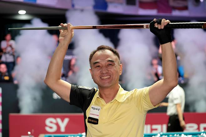 55세 이승진은 지난 8일 경기도 고양 킨텍스 PBA스타디움에서 열린 2025-26시즌 4차 투어 'SY 베리테옴므 PBA 챔피언십' 결승전에서 최성원(휴온스)을 세트스코어 4-1로 완파하고 우승했다.