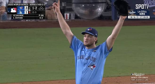 '신인 예세비지 호투' 토론토, 다저스에 승리... 우승까지 1승 남았다