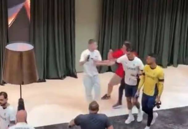 소셜 미디어에 공개된 영상에 따르면, 호날두는 자신의 팬으로 보이는 남성이 호텔 내 보안을 뚫고 호날두에게 다가가 셀카를 찍으려 했다. 이에 호날두는 불쾌한 표정을 지으며 팬을 밀쳤고, 경호원들이 곧바로 해당 팬과 동행한 또 다른 인물을 제지해 호텔 밖으로 끌어냈다.