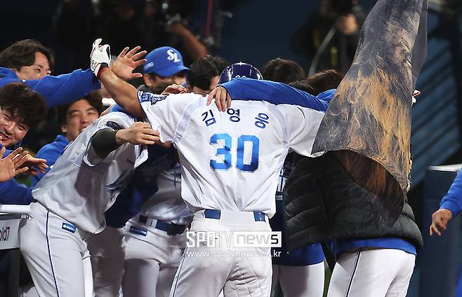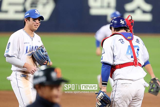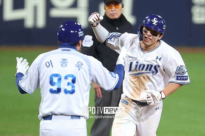 경기 종료 후 마운드 위에서 승리의 기쁨을 나누던 삼성 베테랑 포수 강민호는 김영웅을 바라보고는 90도로 허리를 숙여 인사를 했다. 벼랑 끝 승부에서 팀을 구해낸 김영웅의 맹활약에 경의를 표한 순간이었다.