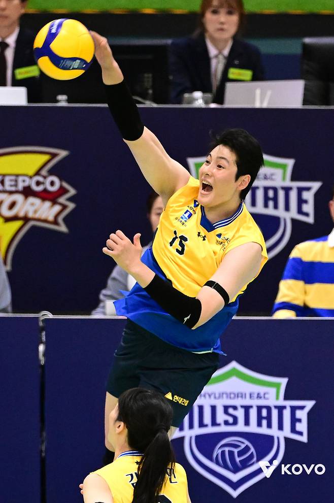 반면 현대건설은 김다인이 경기 내내 상대 세터들과의 지략 대결을 압도하는 가운데, 카리가 팀 내 최다인 18점을 몰아치며 공격의 중심을 잡아주는 가운데, ‘연봉퀸’ 양효진도 특유의 상대 수비의 허점을 찌르는 영리한 공격으로 68.75%의 공격성공률로 14점을 몰아치며 힘을 보탰다. ‘친정팀’ IBK기업은행을 상대한 김희진도 블로킹 1개, 서브득점 1개 포함 6점을 올리며 지난 KOVO컵에서의 0-3 패배를 되갚아줬다.