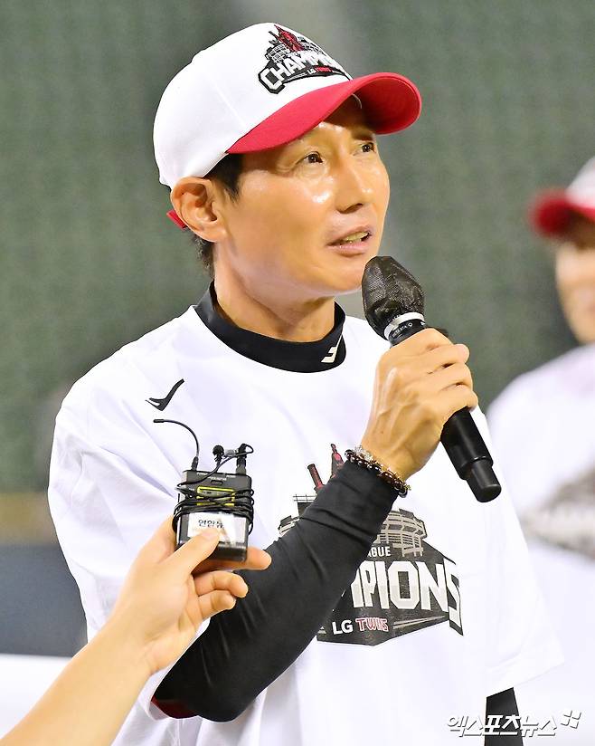 또 지난 2023시즌 한국시리즈 준비 과정을 돌아보며 "그때도 연습경기를 했지만, 우리끼리 청백전을 할 때는 팬들에게 보여주지 못하는 것들을 했다. 그건 다른 팀에게 알려줄 수 없는 우리의 전략이다"라면서 "이번에 (구단)유튜브 보니까 우리 주루 연습하는 게 나왔더라. 그래도 나가면 안 되는데 또 나갔더라"라고 털어놓으며 웃어 보였다.