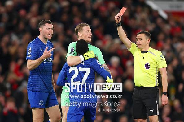 '이게 팀이야?' 맨유-에버턴 경기서 동료 선수 폭행→퇴장 선언...말싸움 중 뺨 때렸다
