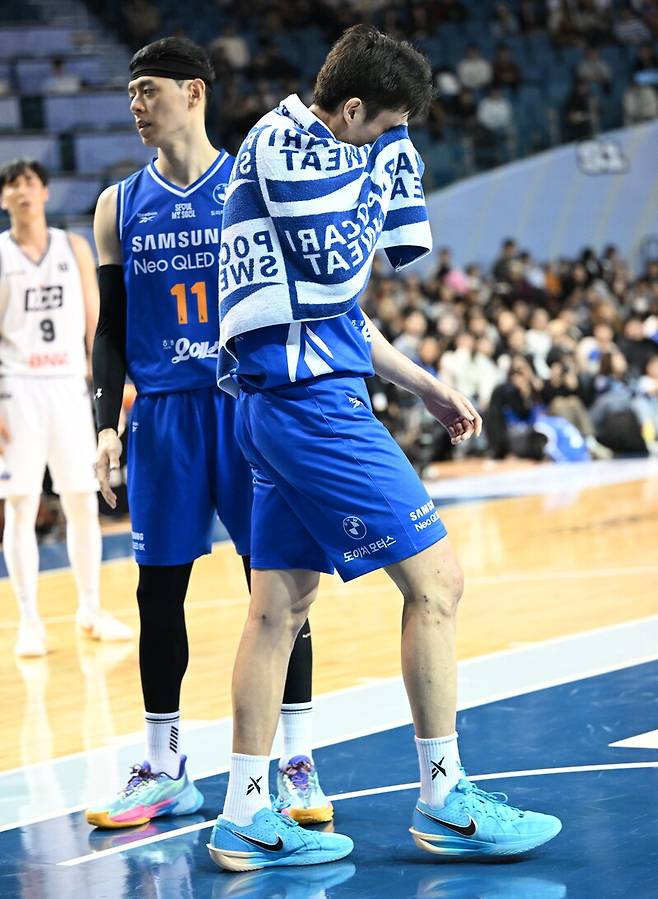 삼성 선수들이 걱정스러운 눈으로 이대성을 바라봤다. 이대성은 혼자 걸어나갔으나, 이대성의 표정이 좋지 않았다. 부상 정도가 작지 않은 듯했다.