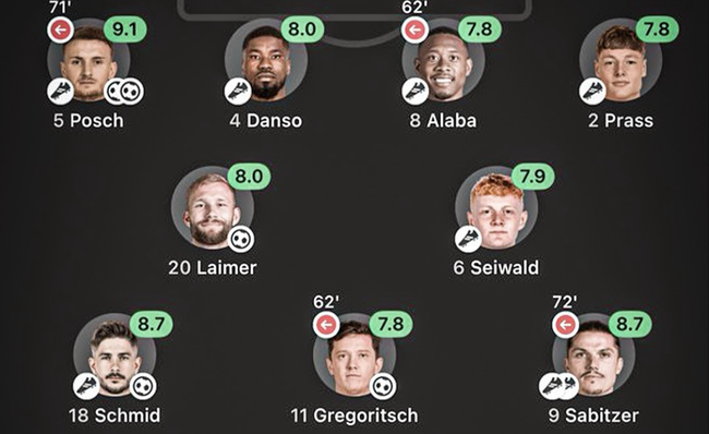 경기 직후 놀라운 기록이 나왔다. 이날 덴마크 선발로 나섰던 11명 중, 골키퍼를 뺀 나머지 10명 모두 최소 한 개의 공격 포인트를 올렸다는 사실이다. 심지어 센터백으로 나섰던 데이비드 알라바, 케빈 단소마저 각각 1도움을 적립했다.