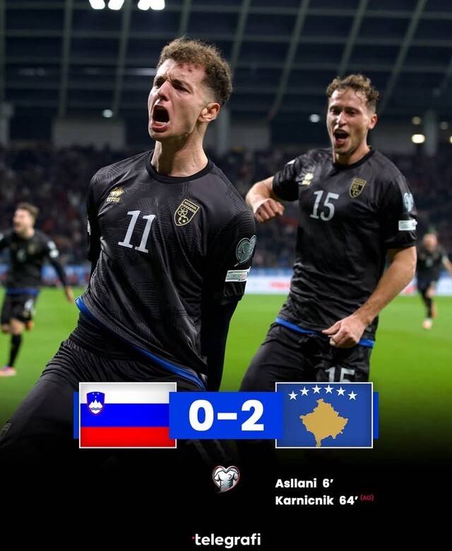 누구도 쉽게 예상하지 못했던 코소보의 기적 같은 행보가 또 한 번 펼쳐졌다. 코소보는 16일(한국시간) 슬로베니아 류블랴나 스토지체 경기장에서 열린 유럽 예선 B조 5차전에서 슬로베니아를 2-0으로 제압하며 플레이오프 출전권 확보에 성공했다. 첫 월드컵 본선의 희망을 '가능성'이 아닌 '현실'로 크게 끌어당긴 경기였다.