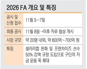 FA 시장은 철저히 경쟁에 의해 가격이 결정된다. 올해는 2022년(15명·989억 원)만큼의 ‘광풍’은 아닐 것으로 보이지만, 지난해 수준의 활황이 예상된다. 특히 내년부터 경쟁균형세(샐러리캡) 상한 조정과 제재금 완화로 구단의 자금 운용 폭이 넓어졌다. 또 프랜차이즈 선수 1명의 몸값은 샐러리캡 산정 시 50%만 반영돼, 구단들이 보다 적극적으로 시장에 나설 전망이다.