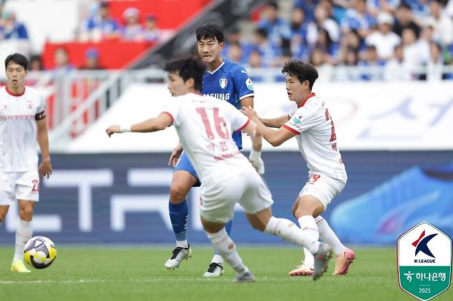 수원 삼성은 4일 수원월드컵경기장에서 열린 부천FC와의 하나은행 K리그2 2025 32라운드 홈 경기에서 두 골을 먼저 실점하고도 박지원과 일류첸코의 득점으로 2-2 무승부를 거뒀다.