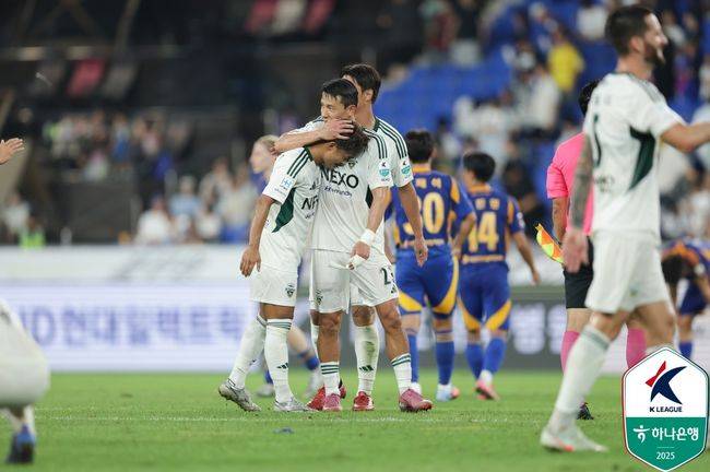 균형은 후반 시작 직후 무너졌다. 후반 8분 전북이 코너킥 상황에서 기가 막힌 세트피스를 선보였다. 두 차례 패스로 기회를 열었고, 아크 근처에서 공을 잡은 이영재가 왼발 슈팅을 낮게 깔아 울산 골망을 흔들었다. 예상치 못한 선제골에 울산의 집중력이 흔들렸다.