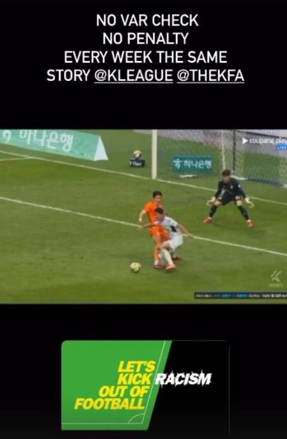 이어 그의 아들인 디에고 포옛 전북 분석코치도 자신의 SNS에 "VAR도 안보고, PK도 안주고, 매주 똑같다(No VAR check, No penalty Every week the same story)"라며 K리그와 대한축구협회(KFA) 공식 계정을 태그했다.