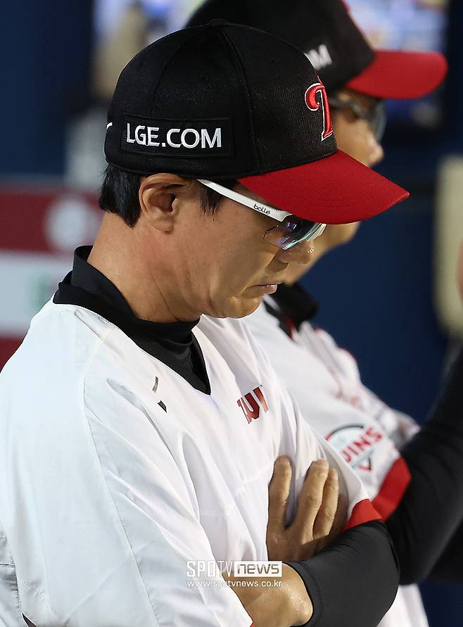 경기 내내 고개를 숙였던 염경엽 감독