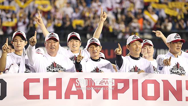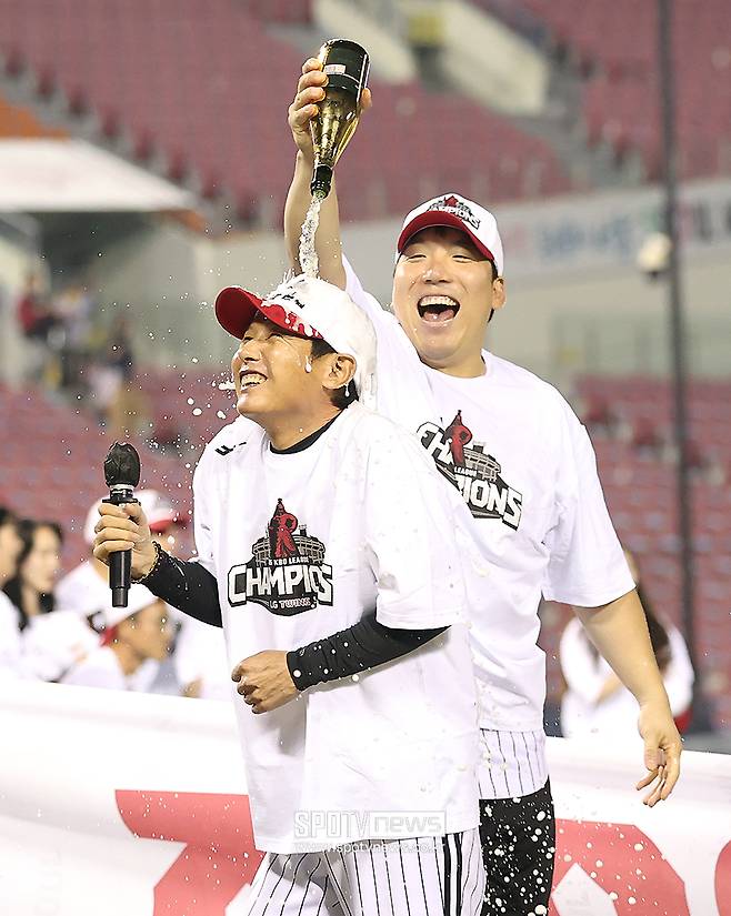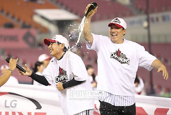 어두운 표정이었던 염경엽 감독도 선수들과 샴페인 세례를 하며 짜릿한 우승 기쁨을 맛봤다.