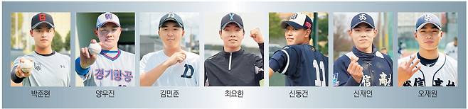 이런 가운데, 아마야구 전문가들이 공통으로 톱5 안에 들 후보로 꼽는 선수는 양우진(경기항공고·투수)과 김민준(대구고·투수), 신재인(유신고·내야수)이다. 양우진은 올해 시속 150㎞ 안팎의 빠른 공을 안정적으로 던졌다. 다만 최근 팔꿈치 피로골절 부상을 당한 것이 변수다. 김민준은 최고 구속 152㎞에 수준급 스플리터를 보유해 스카우트들의 시선을 끌고 있다. 야수 자원 중에선 ‘5툴(파워·스피드·콘택트·수비·어깨) 플레이어’로 평가받는 신재인이 전체 3순위 지명권을 가진 한화 등 내야 보강을 노리는 다수의 팀으로부터 큰 관심을 받고 있다.