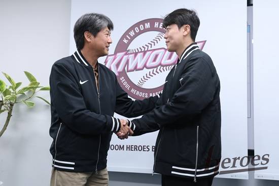 박진형은 24일 고척돔을 찾아 마무리 캠프 일정을 끝내고 돌아온 키움 설종진 감독과 첫 인사를 나눴다.