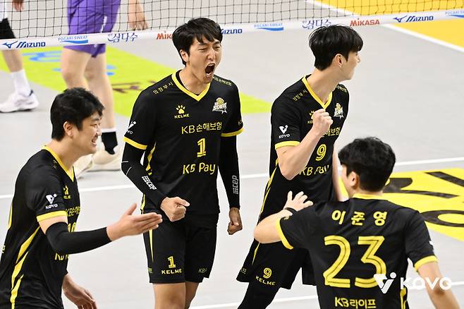 4세트는 양 팀 30점을 넘기는 듀스 혈전이 벌어졌다. 3점 차로 끌려가던 KB손해보험은 연속 득점으로 흐름을 바꾼 후 막판 비예나의 백어택, 상대 범실에 이준영이 아라우조의 공격을 잡아내며 경기에 마침표를 찍었다.