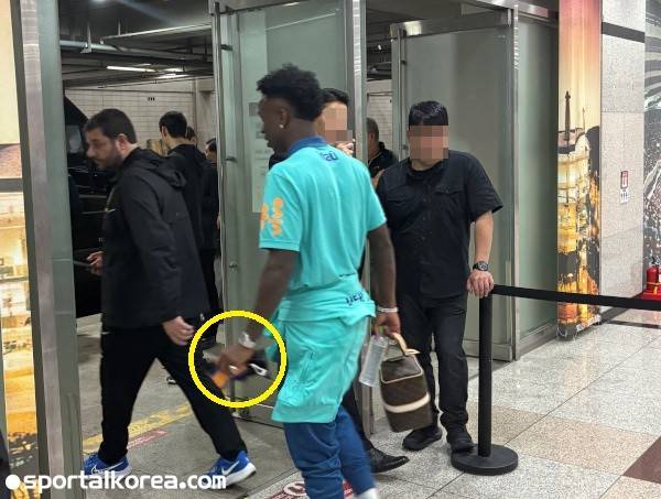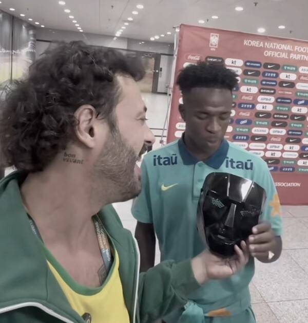 [현장스케치] 뜻밖의 한류? 손흥민 이어 비니시우스도 선물 받았다…이번엔 '오징어 게임 가면'