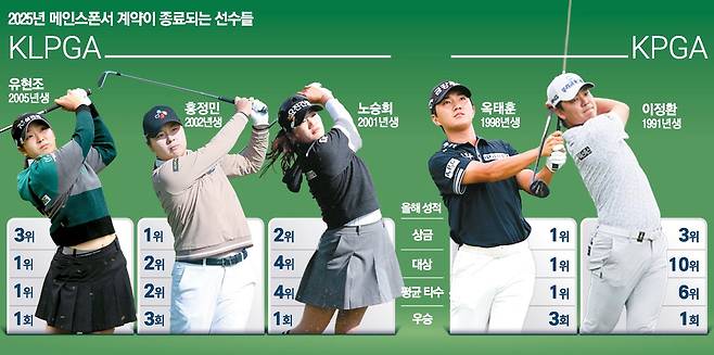 지난 9일 한국여자프로골프(KLPGA) 투어와 한국프로골프(KPGA) 투어 2025시즌 최종전이 마무리된 이후 국내 골프 스토브리그가 뜨겁게 달아오르고 있다. 올해는 KLPGA 투어 상금랭킹 1~3위에 자리한 홍정민, 노승희, 유현조와 미국프로골프(PGA) 투어 진출을 앞둔 이승택, 한국프로골프(KPGA) 투어 5관왕 옥태훈, 내년부터 DP월드투어를 누비는 이정환 등이 자유계약선수(FA) 자격을 얻었다.