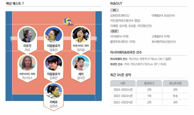 결국 김희진의 활약이 관건이다. 나현수와 강서우가 이다현의 빈자리를 메우기에는 아직 부족하기 때문이다. 다행히 김희진의 기량 회복 속도는 빠르다. 7월 단양에서 펼쳐진 ‘2025 한국실업배구연맹&프로배구 퓨처스 챔프전’에도 출전했다. 경험, 기술, 노련함 등은 풍부하다. 다시 경기 감각을 올리는 것이 중요하다. 오랜만에 주전 기회를 잡은 김희진이 예전 기량을 발휘할 수 있을지 기대가 모아진다.