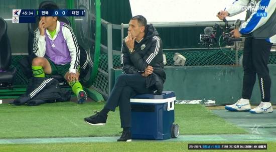 후반 26분 전북 진영에서 송민규가 박스 근처 핸드볼 파울로 대전이 프리킥을 얻었다. 주심은 VAR실과 소통했고 박스 안에서의 반칙으로 판단해 페널티킥을 선언했다. 에르난데스가 키커로 나섰는데 송범근을 지나치는 낮고 빠른 슈팅으로 동점을 만들었다.