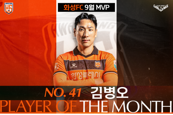 2일 화성FC는 "베테랑 공격수 김병오 선수가 팬 투표를 통해 2025시즌 9월 월간 MVP로 선정됐다"라고 밝혔다. 이번 팬 투표는 9월 29일부터 30일까지 구단 공식 소셜미디어(SNS) 채널을 통해 진행됐으며, 전체 투표자의 36%가 뽑은 김병오가 9월 MVP로 이름을 올렸다.
