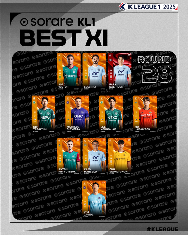 28라운드 베스트11에는 MVP 박대훈을 비롯해 세징야(대구), 주앙 빅토르, 김태현, 이영재(이상 전북현대), 마테우스(FC안양), 모재현(강원FC), 안톤, 카이오(대구), 조성권(광주FC), 골키퍼 김다솔(FC안양)이 이름을 올렸다.