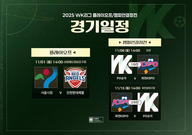 한국여자축구연맹 양명석 회장은 “2025 WK리그의 최강자를 가리기 위한 마지막 여정이 시작됐다. 선수들이 한 시즌을 마감하는 마지막 축제의 장에서 최선을 다해 멋진 경기를 보여줄 것으로 기대된다. 연맹에서도 팬 여러분의 관람을 위해 다양한 이벤트를 준비했으니 많은 관심과 응원을 부탁드린다.”고 밝혔다. 이어 “이번 플레이오프와 챔피언결정전을 성공적으로 마무리해 내년 2026 WK리그로 여자축구의 열기가 이어지길 바란다”고 덧붙였다.