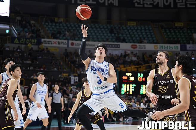 가스공사는 5분 44초를 남기고 김준일의 실책 이후 유기상에게 3점슛을 허용했다. 56-66, 이날 처음으로 10점 차이로 벌어지는 순간이었다. 창원체육관은 LG 팬들의 뜨거운 함성으로 가득 찼다.