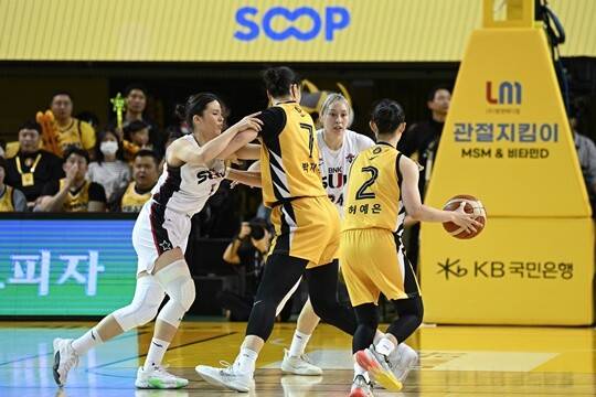 그럼에도 불구하고, KB는 경기 종료 4분 5초 전 52-53으로 역전당했다. 허예은이 또 한 번 물꼬를 텄다. 박지수의 킥 아웃 패스를 3점으로 마무리한 것. 밀렸던 KB도 55-53으로 다시 앞섰다.