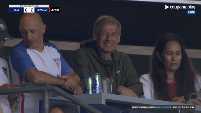 이날 의외의 인물이 경기장을 찾았다. 지난 2023년 3월 한국 대표팀 지휘봉을 잡은 이후, 최악의 지도력과 최악의 워크에식으로 경질된 클린스만 전 감독이었다. 이번 A매치에서 아들인 조너선 클린스만이 미국 대표팀에 소집됐고, 응원차 방문한 것으로 알려졌다.