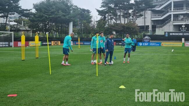 ‘월드클래스’들이 즐비한 브라질 대표팀이 빗속에서도 한국전을 대비한 훈련을 진행했다. 비니시우스 등 최정예 선수들이 모두 훈련에 참가했다.