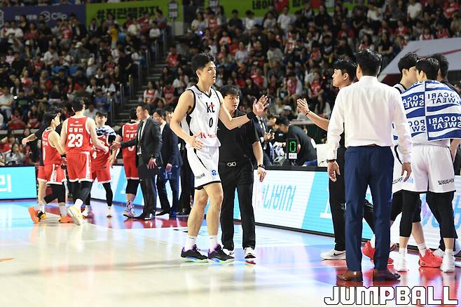KT는 김선형 더비이자 통신사 라이벌 대결로 관심을 모았던 5일 서울 SK와 경기에서 무려 40점 차(64-104)로 패하며 개막 2연승에 실패했다. ‘KBL 왕’ 자밀 워니에게만 38점 18리바운드를 헌납하며 무너졌다.