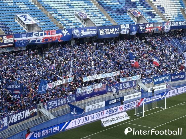 [인터풋볼=박윤서 기자(수원)] 수원 삼성 팬들의 메시지가 눈에 띄었다.