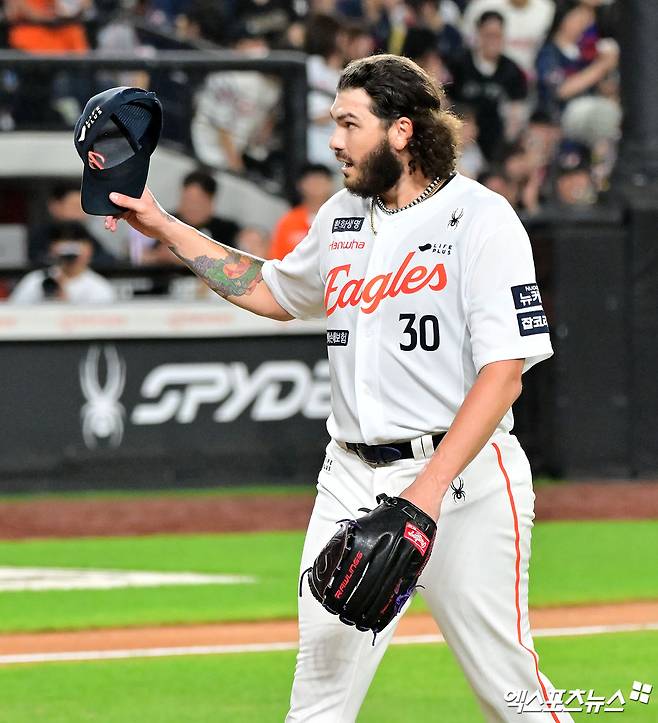 선발투수로 코디 폰세가 나선다. 이날 경기 전까지 폰세는 25경기 157⅔이닝을 소화해 패전 없이 16승, 평균자책점 1.66을 기록 중이다. KBO 역대 최다 개막 후 연속 선발승을 기록 중인 폰세는 이날 단일 시즌 최다 탈삼진 기록까지 노린다.