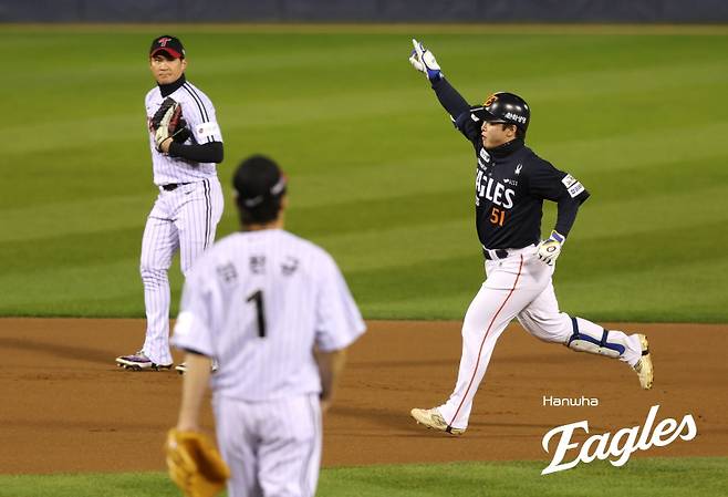 문현빈은 올가을 가장 뜨거운 타자다. 지난 18일부터 24일까지 열린 삼성 라이온즈와의 플레이오프(PO·5전 3승제) 5경기에서 타율 0.444 2홈런 10타점을 기록하며 맹타를 휘두르더니, 지난 27일 열린 LG와의 KS 2차전에서는 임찬규를 상대로 선제 투런포, 29일 3차전에서는 8회 말 한화가 2-3로 추격하는 적시타를 포함해 멀티히트를 기록했다.