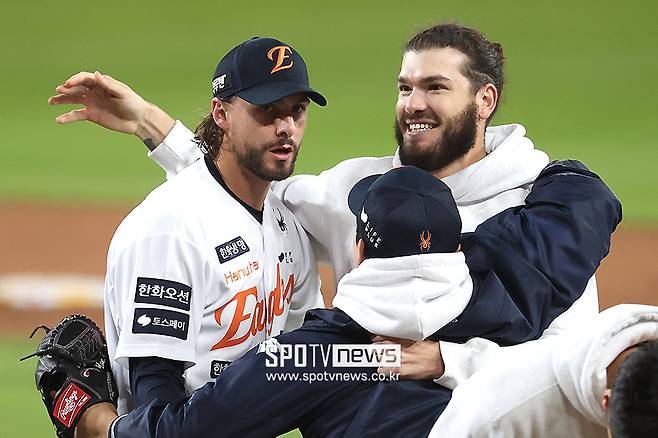 한화 이글스는 24일 대전 한화생명볼파크에서 열린 '2025 신한 SOL뱅크 KBO 포스트시즌' 삼성 라이온즈와 플레이오프 5차전에서 11-2로 크게 이겼다. 4차전 충격적 역전패 후유증은 없었다. 시리즈 전적 3승 2패로 한국시리즈 진출에 성공했다. 문동주는 1차전 2이닝 무실점과 3차전 4이닝 무실점 호투를 발판으로 시리즈 MVP에 선정됐다. 기자단 투표에서 유효표 87표 가운데 61표, 득표율70.1%로 문현빈(13표) 노시환 채은성(각 4표) 코디 폰세(3표) 김영웅(2표)을 제쳤다.