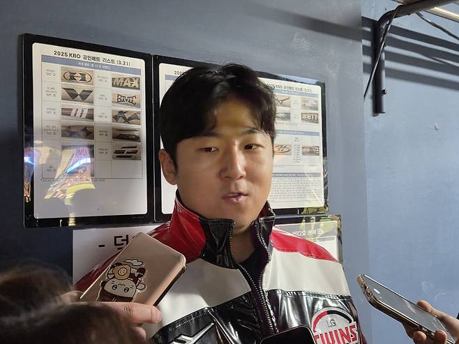 송승기는 "손주영 선배에게 계속 묻고 있다. 손주영 선배가 '공을 던지는 건 똑같지만, 준비하는 과정이 다르다'며 상세하게 설명해주셨다"며 "2차전에서도 몸을 풀면서 손주영 선배의 도움을 받았다"고 고마워했다.