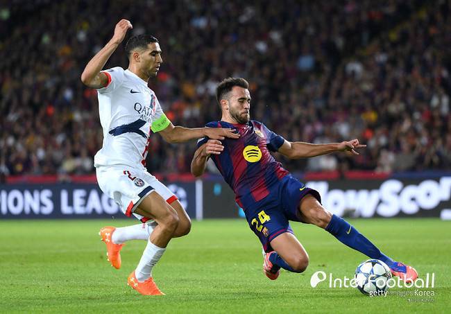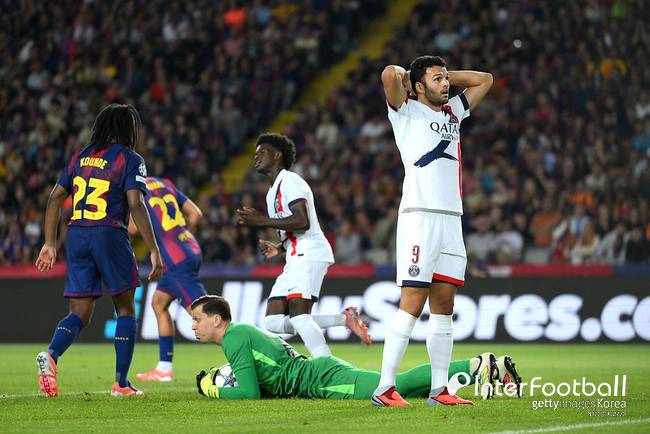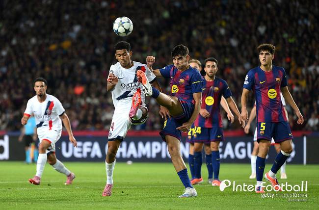 PSG도 반격했다. 전반 30분 좌측에서 프리킥을 얻어냈고 하키미가 다이렉트 슈팅으로 연결했다. 골키퍼 선방에 막혔다. 바르셀로나도 가만히 있지 않았다. 전반 37분 골키퍼가 나온 것을 보고 올모가 장거리 슈팅을 시도했다.